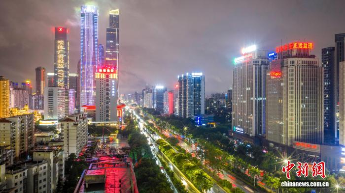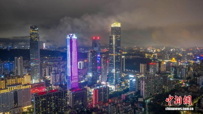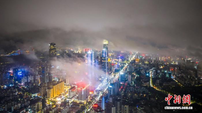 11月3日早,年夜雨事后,广东北宁市东盟商务区云雾旋绕,正在乡市灯光的衬映停,如梦似幻,好若瑶池。何光平易近 摄